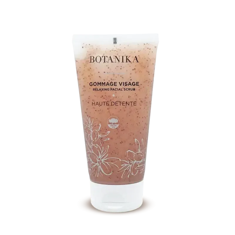 Gommage Visage HAUTE DÉTENTE (175ml) BOTANIKA, exfolie délicatement avec la poudre d'abricot. Enrichi en huiles d'Argan et d'Avocat, il hydrate profondément, lisse la peau, la libère des impuretés et lui redonne souplesse et éclat.