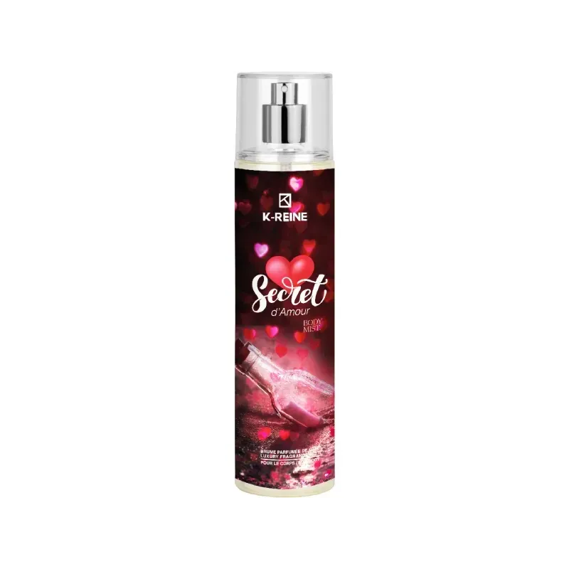 Brume de luxe K-REINE 230ML au parfum "Secret d'Amour" hydratant, nourrit et parfume délicatement le corps et les cheveux d'un sillage sensuel et longue durée.
