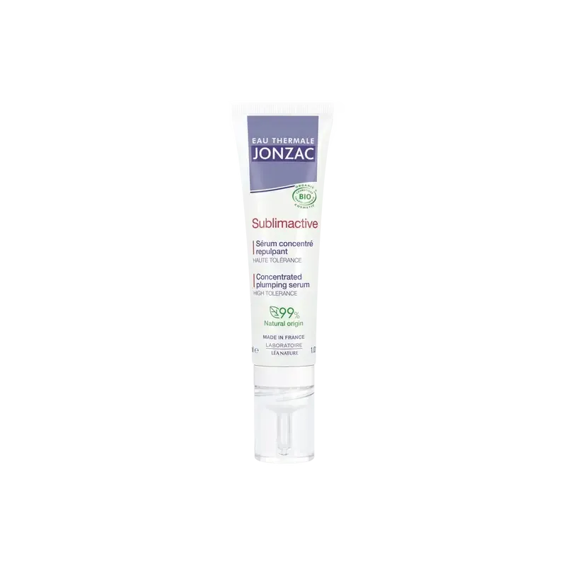 Le Jonzac Sublimactive Sérum Concentré Hyaluronique Anti-Âge Cellulaire 30ml est un soin d'exception conçu pour cibler les signes visibles du vieillissement cutané, notamment les rides, le manque de fermeté et la perte d'éclat, pour les peaux matures, même sensibles. Ce sérum ultra-concentré offre une action anti-âge globale et profonde. Issu de la dermo-cosmétique bio, sa formule unique est basée sur une concentration optimale en Eau Thermale de Jonzac (20%), reconnue pour ses propriétés isotoniques, apaisantes, régénérantes et anti-inflammatoires. Elle agit en synergie avec de l'Acide Hyaluronique pur et fragmenté (de haut et bas poids moléculaire) pour une hydratation multicouche et un effet repulpant intense, ainsi qu'un postbiotique (Lactobacillus Ferment) et d'autres actifs végétaux pour stimuler le renouvellement cellulaire et renforcer la barrière cutanée.