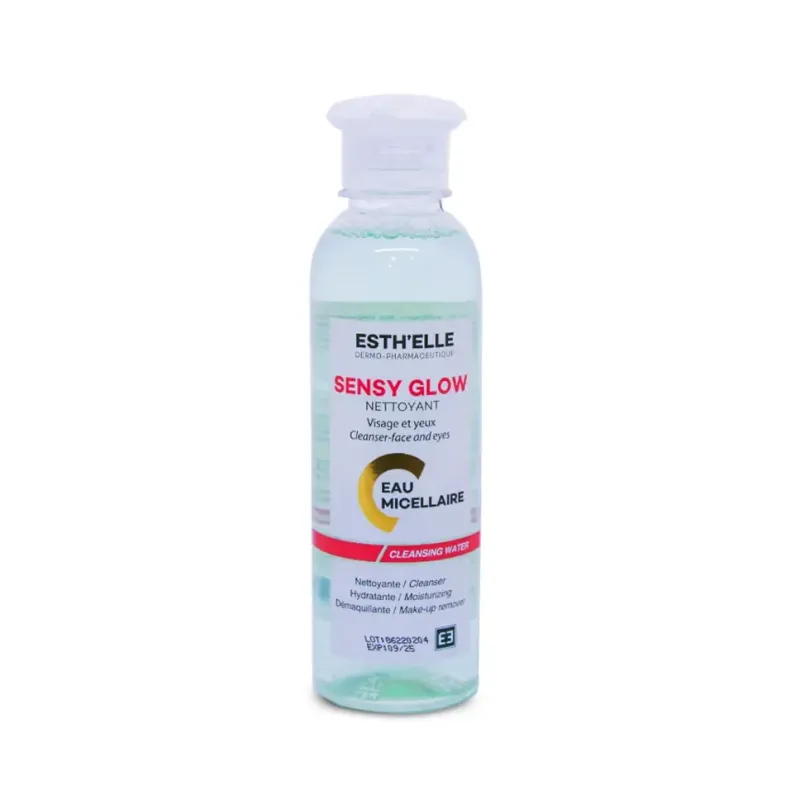 L'ESTHELLE SENSY GLOW EAU MICELLAIRE 250ML est une solution de nettoyage et de démaquillage tout-en-un, sans rinçage, conçue pour respecter le pH et la sensibilité de la peau tout en lui offrant un coup d'éclat. Grâce à sa technologie micellaire avancée, elle agit comme un aimant pour capter et éliminer efficacement les impuretés, le maquillage (visage et yeux) et les particules de pollution. Au-delà du nettoyage, sa formule est enrichie en actifs vitaminés et apaisants qui hydratent en profondeur, préviennent les sensations d'inconfort et de tiraillement, et revitalisent les peaux ternes. Elle est particulièrement adaptée pour un nettoyage en douceur des peaux sensibles, ainsi que des peaux mixtes à grasses en aidant à réguler l'excès de sébum, laissant la peau nette, fraîche, apaisée et éclatante.