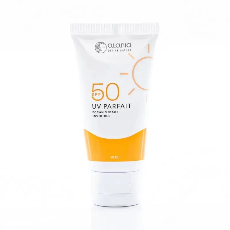 L'Écran Solaire Visage Invisible UV Parfait d'ALANIA est une très haute protection solaire spécialement formulée pour le visage. Il offre une protection complète contre les rayons UVA et UVB grâce à un indice SPF50, garantissant ainsi une défense optimale contre les coups de soleil et les dommages cutanés. Sa particularité réside dans sa texture invisible, légère et non collante qui pénètre rapidement sans laisser de traces blanches. En plus de sa fonction protectrice, cet écran agit comme un soin hydratant et prévient activement le vieillissement cutané ainsi que l'apparition des taches brunes (anti-taches pigmentaires). Il est idéal pour un usage quotidien et peut être utilisé comme excellente base de maquillage.
