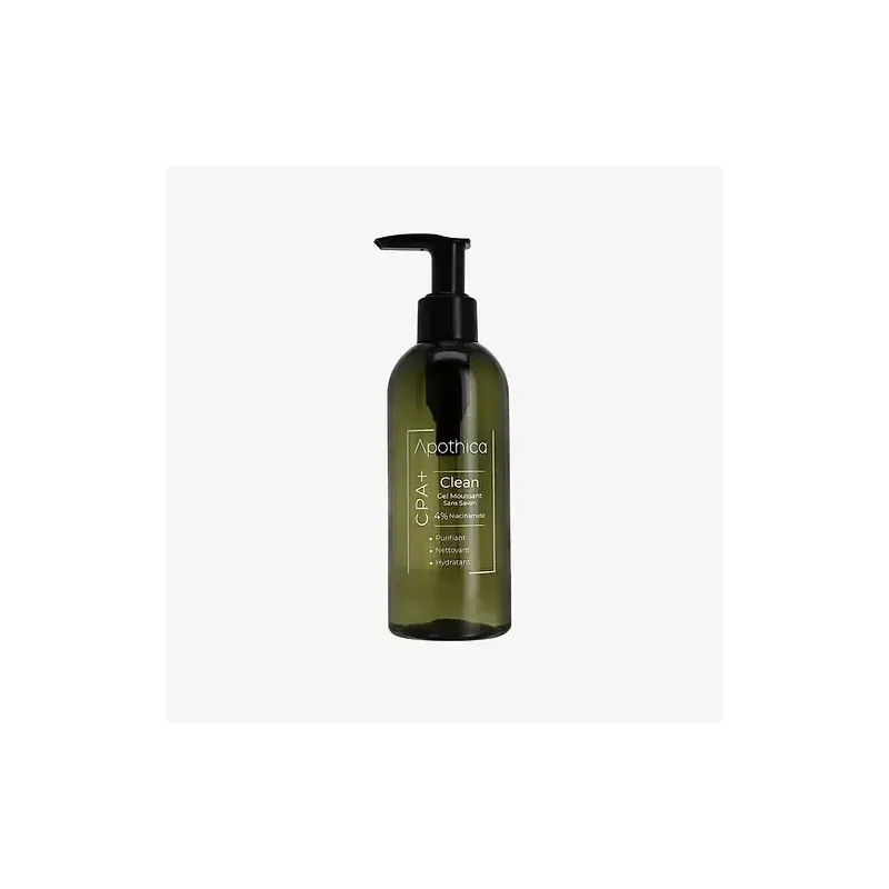 Le Gel Moussant CPA+ CLEAN d'APOTHICA est un nettoyant quotidien sans savon spécifiquement formulé pour les peaux à imperfections, mais également adapté aux peaux rugueuses et squameuses. Ce gel moussant est conçu pour purifier et assainir la peau tout en douceur, sans la dessécher. Grâce à sa formule enrichie en agents hydratants et en Niacinamide (Vitamine B3) à 4%, il nettoie efficacement le visage et le corps, aide à réduire les imperfections et les rougeurs, et maintient l'hydratation cutanée. Il prépare la peau à recevoir les soins suivants, la laissant lisse, apaisée et douce.