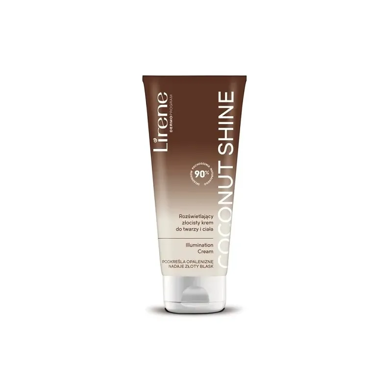 Description détaillée La LIRENE COCONUT SHINE CRÈME ILLUMINATRICE VISAGE ET CORPS 150ML est un soin hydratant et embellisseur polyvalent (visage et corps) conçu pour offrir à la peau un éclat doré et radieux. Sa formule est enrichie en pigments minéraux spéciaux (Mica) qui réfléchissent la lumière pour un effet illuminateur immédiat, idéal pour mettre en valeur le bronzage ou redonner de l'éclat à une peau terne. Composée de 90% d'ingrédients d'origine naturelle et étant un produit vegan, elle combine l'effet embellissant avec un soin nourrissant intense. L'Eau de Coco Biologique procure une hydratation et une sensation de fraîcheur, tandis que les Huiles de Colza et d'Amande Douce régénèrent et adoucissent la peau. Elle peut être utilisée seule ou en complément du fond de teint pour un effet lumineux.