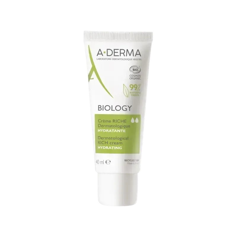 La A-DERMA BIOLOGY CRÈME RICHE HYDRATANTE PEAUX FRAGILES 40ML est la première crème hydratante dermatologique certifiée BIO de la marque, spécialement formulée pour prendre soin des peaux fragiles et sèches. Sa texture riche et onctueuse, non comédogène, offre un confort immédiat et durable. Elle assure une hydratation intense pendant 24h et agit pour rééquilibrer et renforcer la barrière cutanée des peaux les plus sensibles. Composée de seulement les ingrédients essentiels (99% d'origine naturelle), elle est conçue pour une haute tolérance et peut être utilisée seule ou mélangée à d'autres soins BIOLOGY pour un traitement sur mesure.