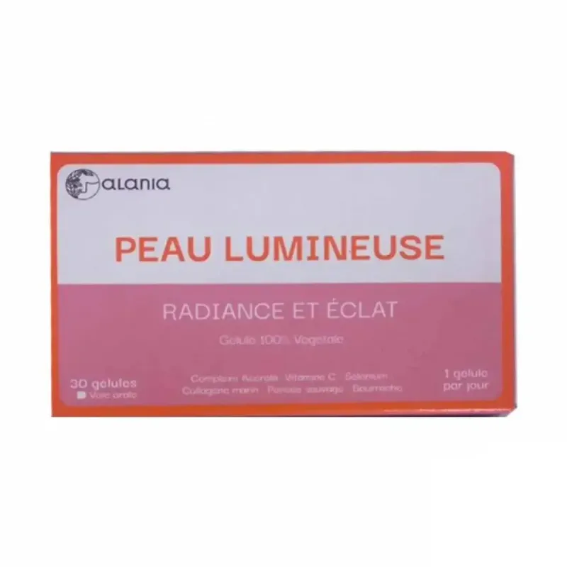 ALANIA PEAU LUMINEUSE RADIANCE ET ÉCLAT 30 GÉLULES est un complément alimentaire formulé pour agir de l'intérieur afin d'améliorer la santé, la vitalité et l'apparence de la peau. Il s'agit d'une synergie de 12 actifs puissants (vitamines, minéraux, antioxydants, collagène et huiles végétales) qui travaillent ensemble pour nourrir la peau en profondeur, renforcer sa barrière cutanée, et révéler un teint plus lumineux et uniforme. Ce complément participe également à une meilleure régénération cellulaire et aide à améliorer l'élasticité et la qualité globale de la peau.