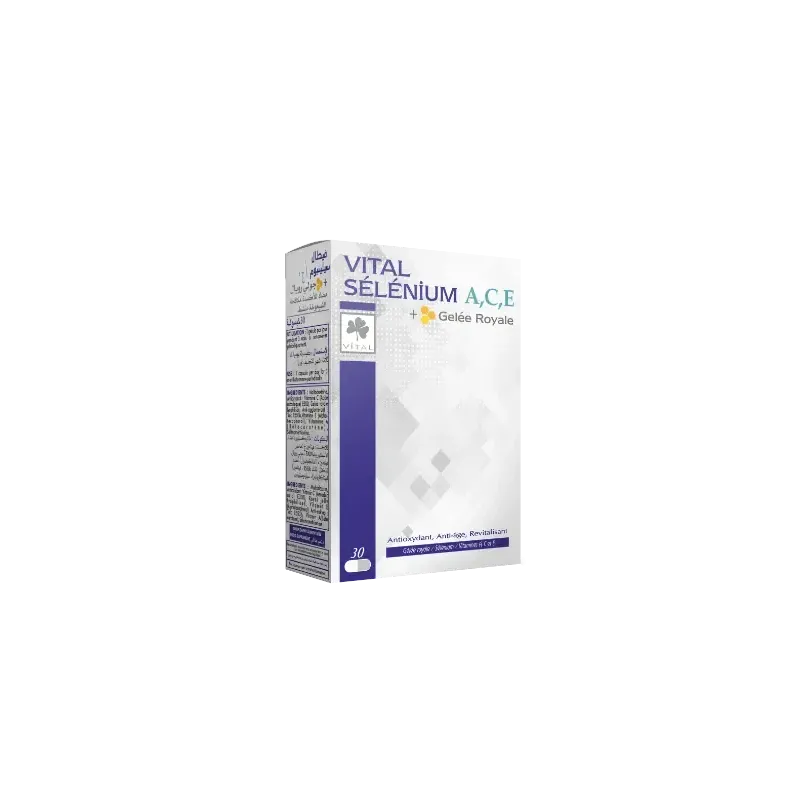 VITAL SÉLÉNIUM ACE 30 GÉLULES est un complément alimentaire conçu pour offrir une puissante protection antioxydante. Sa formule synergique combine trois nutriments essentiels : le sélénium, la vitamine A et la vitamine E, ainsi que de la vitamine C. Ces quatre composants agissent en harmonie pour protéger les cellules contre le stress oxydatif, un facteur majeur de vieillissement et de nombreuses maladies. Le sélénium contribue au bon fonctionnement de la thyroïde, tandis que les vitamines A et C sont essentielles pour le maintien d'une peau et d'une vision saines. La vitamine E, quant à elle, est un antioxydant majeur.