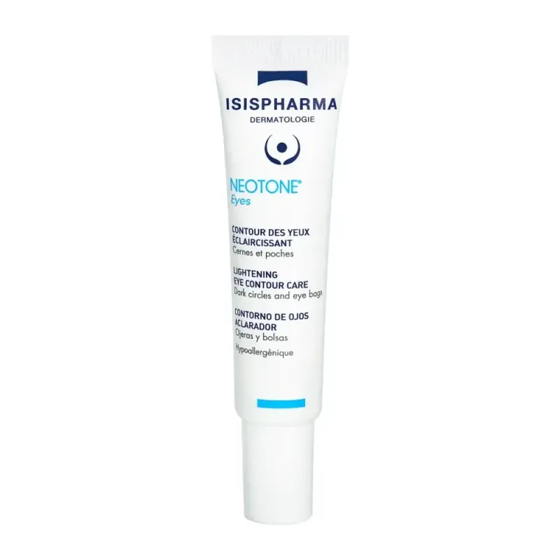 L'ISISPHARMA NEOTONE CONTOUR DES YEUX ÉCLAIRCISSANT 15ML, également connu sous le nom de Neotone Eyes, est un soin spécifiquement conçu pour la zone délicate du contour des yeux. Il vise à réduire visiblement les taches pigmentaires (cernes bruns), les cernes vasculaires (cernes bleus/violets) et les poches, pour un regard plus lumineux, frais et reposé. Ce tube de 15 ml est doté d'une bille roll-on, offrant un effet frais et décongestionnant lors de l'application.