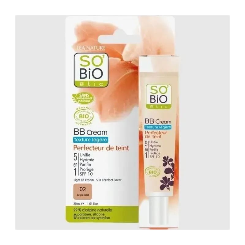 La BB Crème Perfectrice Teinte Medium de SO'BiO étic est un soin hybride 5-en-1 qui combine les bénéfices d'un soin hydratant et d'un fond de teint léger pour unifier le teint et sublimer la peau. Cette teinte Medium est conçue pour s'adapter aux carnations claires à moyennes. Enrichie en Huile de Jojoba Biologique, la formule hydrate et protège la peau tout au long de la journée. Elle offre une couvrance légère qui floute les imperfections, estompe les rougeurs et lisse le grain de peau, sans obstruer les pores. Elle procure un effet "seconde peau" naturel et lumineux, idéal pour un maquillage quotidien rapide et unifié.