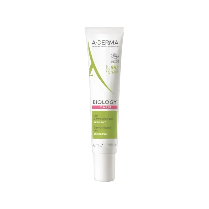 Le A-Derma Biology Calm Soin Apaisant 40ml est un soin dermatologique conçu pour apaiser et protéger les peaux réactives et intolérantes. Certifié bio et formulé avec 99% d'ingrédients d'origine naturelle, il agit comme un bouclier apaisant pour les peaux sujettes aux rougeurs, aux sensations d'échauffement et de picotement. Ce soin hydratant et équilibrant aide la peau à retrouver confort et douceur.