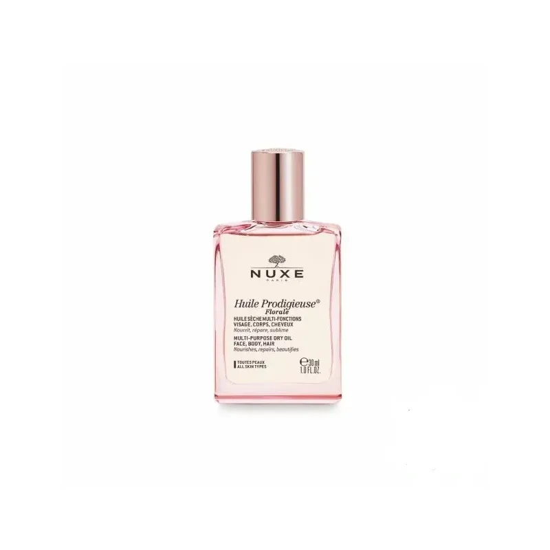 L'Huile Prodigieuse Florale de Nuxe est une huile sèche multi-fonctions qui nourrit, répare et sublime le visage, le corps et les cheveux. Cette version offre la même efficacité que l'Huile Prodigieuse classique, mais avec un nouveau parfum frais et floral qui la distingue.