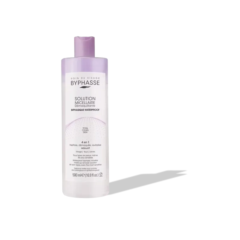La solution micellaire démaquillante 4 en 1 biphasique de Byphasse est un soin puissant, spécialement formulé pour les maquillages les plus tenaces, y compris le maquillage waterproof et longue durée. Sa formule biphasique, composée d'une phase aqueuse et d'une phase huileuse, agit en synergie pour dissoudre et éliminer sans effort toutes les traces de maquillage et d'impuretés. La phase huileuse dissout les pigments et les textures tenaces, tandis que la phase micellaire nettoie la peau en profondeur. Ce soin démaquille efficacement le visage, les yeux et les lèvres, tout en respectant l'équilibre naturel de la peau. Il laisse la peau propre, douce et sans résidu gras. C'est la solution parfaite pour un démaquillage complet et rapide.