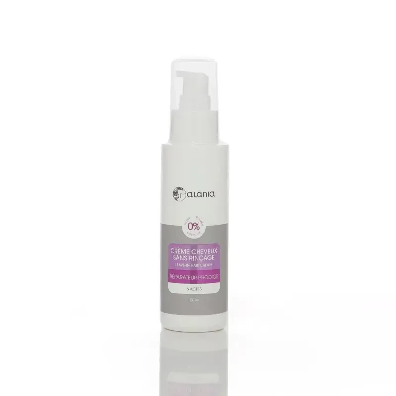 ALANIA CRÈME CHEVEUX SANS RINÇAGE 100ML, connue également sous le nom de "Réparateur Prodige", est un soin capillaire quotidien enrichi en un complexe de 6 actifs puissants. Cette crème légère et non grasse est formulée pour hydrater, réparer et protéger les cheveux abîmés, secs et fragilisés. Elle agit en profondeur pour restaurer la structure interne du cheveu, renforcer les racines et prévenir la casse et l'apparition des pointes fourchues. Sans alourdir, elle facilite le coiffage, aide à maîtriser les frisottis, et redonne éclat, douceur et vitalité aux cheveux.