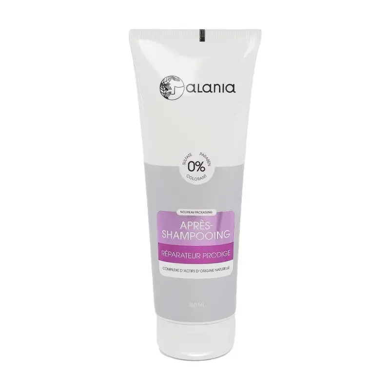 L'Après-Shampooing Réparateur Prodige d'ALANIA est un soin capillaire indispensable conçu pour parfaire le lavage, démêler et réparer les cheveux fatigués et fragilisés. Sa formule riche et onctueuse est un allié précieux pour nourrir intensément et revitaliser la chevelure. Grâce à l'enrichissement en actifs réparateurs tels que la Kératine Hydrolysée et le Beurre de Karité, il pénètre la fibre capillaire pour la renforcer et la lisser. Il facilite grandement le démêlage, réduisant ainsi la casse, et laisse les cheveux incroyablement doux, souples, brillants et vigoureux, sans les alourdir. Il complète parfaitement l'action du shampooing de la même gamme pour un rituel de réparation complet.