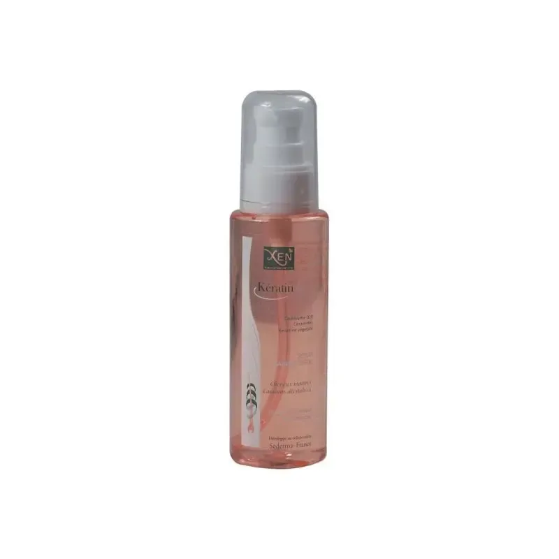 XEN KÉRATINE Q10 SÉRUM GAINANT SPF 30 est un soin capillaire sans rinçage, spécialement conçu pour protéger, gainer et réparer les cheveux abîmés ou exposés au soleil. Sa formule légère et non grasse combine les propriétés fortifiantes de la kératine, le composant essentiel de la fibre capillaire, avec le puissant antioxydant Coenzyme Q10. Le sérum est également enrichi d'un filtre solaire SPF 30 pour protéger les cheveux des dommages causés par les rayons UV, qui peuvent assécher, décolorer et rendre les cheveux plus fragiles. Il est idéal pour une utilisation quotidienne, particulièrement avant une exposition au soleil ou à des facteurs environnementaux agressifs.