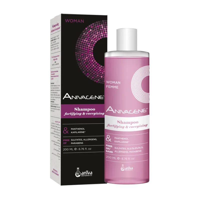 Le ANIVAGENE SHAMPOOING ANTI CHUTE FEMME 200ML (souvent appelé Shampoing Fortifiant & Énergisant Femme) est un soin lavant spécifiquement formulé pour lutter contre la chute de cheveux et renforcer les cheveux clairsemés ou affaiblis chez la femme. Présenté en flacon de 200 ml, ce shampooing utilise une base lavante douce qui nettoie délicatement le cuir chevelu tout en respectant son équilibre fragile. Sa formule est enrichie en actifs dermo-stimulants puissants, notamment le Kapilarine® et le Panthénol, qui agissent en synergie pour fortifier la fibre capillaire de la racine à la pointe, prévenir les dommages et stimuler la microcirculation du cuir chevelu. Son usage régulier permet de revitaliser les cheveux et de leur redonner vigueur, épaisseur et volume. Il est également formulé pour être extra-doux, sans sulfates ni parabènes.