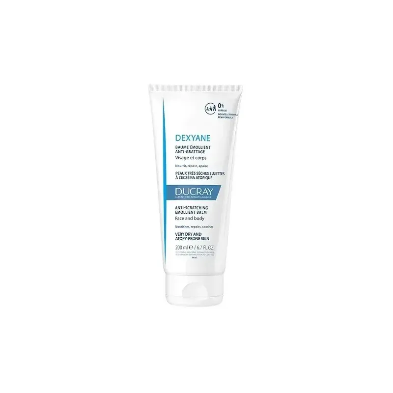 Le DUCRAY DEXYANE BAUME ÉMOLLIENT ANTI-GRATTAGE est un soin quotidien conçu pour le visage et le corps des peaux très sèches et sujettes à l'eczéma atopique. Sa formule haute tolérance, sans parfum ni paraben, agit pour nourrir, réparer et apaiser la peau. Il présente une texture innovante, qualifiée de "baume au cœur huileux", qui fond rapidement au contact de la peau pour une application facile et un fini non collant. Ce baume assure une hydratation intense et durable en restaurant la barrière cutanée altérée, et procure un soulagement immédiat des démangeaisons et des sensations d'inconfort. Il contribue à améliorer la qualité de vie, notamment en réduisant les insomnies liées au grattage. Il peut être utilisé par toute la famille, y compris les nourrissons dès la naissance.