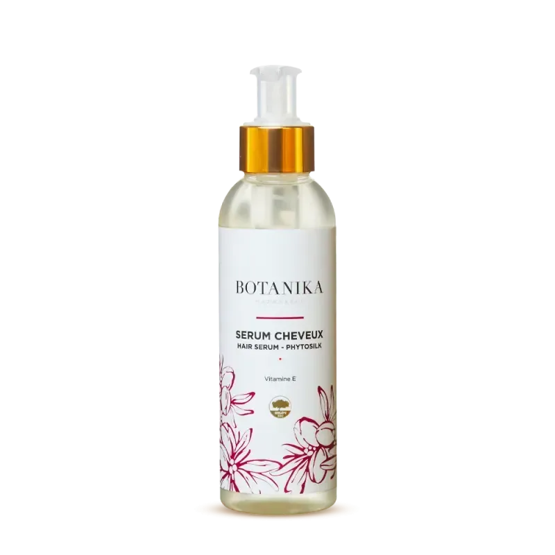 Sérum Cheveux PHYTOSILK (150ml) BOTANIKA. Formule riche en Huile d'Argan, Vitamine E et protéines végétales, il protège, répare et gaine la fibre capillaire. Ce soin sans rinçage redonne souplesse, fluidité et un éclat naturel aux cheveux.