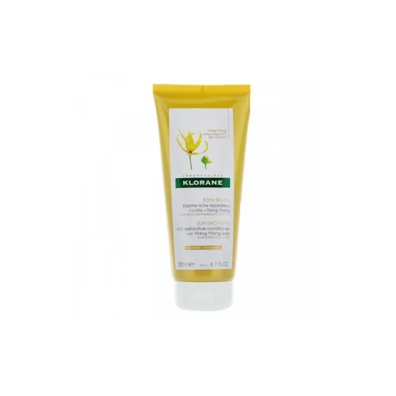 Le Baume Riche Réparateur à la Cire d'Ylang-Ylang de Klorane, issu de la gamme Solaire, est un soin après-shampooing spécifiquement formulé pour réparer, nourrir et sublimer les cheveux qui ont été fragilisés par les agressions estivales. Il cible les dommages causés par le soleil, la mer (sel), le sable et la piscine (chlore). Grâce à la cire essentielle d'Ylang-Ylang, naturellement riche en acides gras nutritifs, ce baume assure une double protection (interne et externe) du cheveu photo-exposé. Enrichi en agents nourrissants et en Kératine Végétale, il pénètre profondément la fibre capillaire pour la réparer de l'intérieur, tandis qu'il démêle instantanément les longueurs. La chevelure retrouve une douceur, une souplesse et une brillance remarquables.