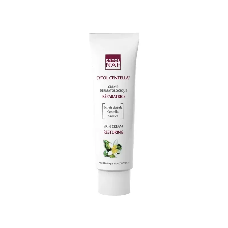 La Crème Dermatologique Réparatrice CYTOL CENTELLA est un soin incontournable pour les peaux fragilisées, irritées ou ayant besoin de réparation intensive. Sa formule est hautement concentrée en extrait de Centella Asiatica, une plante médicinale reconnue pour ses puissantes vertus réparatrices, apaisantes et régénératrices. Cette crème agit en profondeur pour favoriser la cicatrisation des irritations superficielles, apaiser les rougeurs et les sensations de tiraillement, et restaurer la barrière cutanée. C'est le soin idéal pour les peaux post-acte dermatologique (peeling, laser), après une exposition au soleil, ou pour les irritations et égratignures du quotidien.