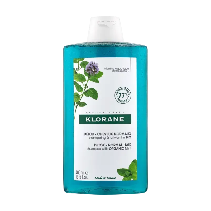 Le Shampooing Détox Anti-Pollution à la Menthe Aquatique de Klorane est un soin purifiant formulé pour les cheveux exposés quotidiennement aux agressions de la pollution atmosphérique. Idéal pour les citadins, ce shampooing nettoie intensément le cuir chevelu et les cheveux en éliminant les impuretés et les particules polluantes (efficacité prouvée pour éliminer 97% des particules polluantes). Grâce à l'extrait de Menthe aquatique BIO, riche en polyphénols antioxydants, il détoxifie sans perturber l'équilibre naturel du cuir chevelu ni assécher la fibre capillaire. Sa texture liquide transparente procure une intense sensation de fraîcheur et laisse la chevelure légère, aérienne et délicatement parfumée à la menthe froissée.