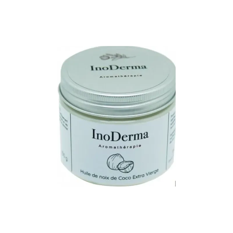 L'INODERMA HUILE DE NOIX DE COCO EXTRA VIERGE 150G est une huile végétale 100% pure et naturelle, obtenue par la première pression à froid de la chair de noix de coco (Cocos Nucifera). Ce procédé garantit la conservation de tous les nutriments essentiels, faisant de cette huile un soin multi-usages de haute qualité. Reconnue pour ses propriétés nourrissantes et régénérantes, elle offre de nombreux bienfaits pour la peau et les cheveux. Elle a une texture qui se solidifie naturellement à une température inférieure à $25^\circ\text{C}$, mais redevient liquide au contact de la chaleur de la peau, sans altérer sa qualité.