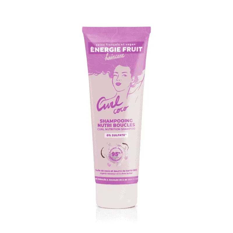 Shampoing doux sans sulfate, au pH neutre, à l'huile de coco et beurre de karité bio, qui nettoie, nourrit, et redéfinit les boucles, leur offrant rebond, souplesse et protection contre les frisottis.