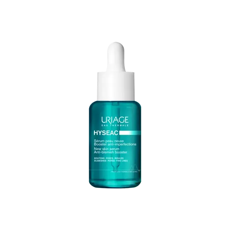 Le Sérum Peau Neuve Booster Anti-Imperfections Hyseac d'Uriage est un soin concentré, léger et frais, conçu pour les peaux mixtes à grasses à tendance acnéique. Ce sérum offre une double action : il corrige les imperfections (boutons, points noirs) et affine le grain de peau pour révéler un teint plus lisse et plus lumineux. Sa formule est enrichie d'un complexe de trois actifs clés, dont l'Eau Thermale d'Uriage et l'extrait végétal de Réglisse, qui agit sur la séborrhée. L'action exfoliante douce des AHA (Acide Glycolique et Acide Lactique) et l'extrait végétal de Réglisse limitent l'apparition de nouvelles imperfections et lissent la peau. Sa texture gel pénètre rapidement, ne colle pas et constitue une excellente base de maquillage.