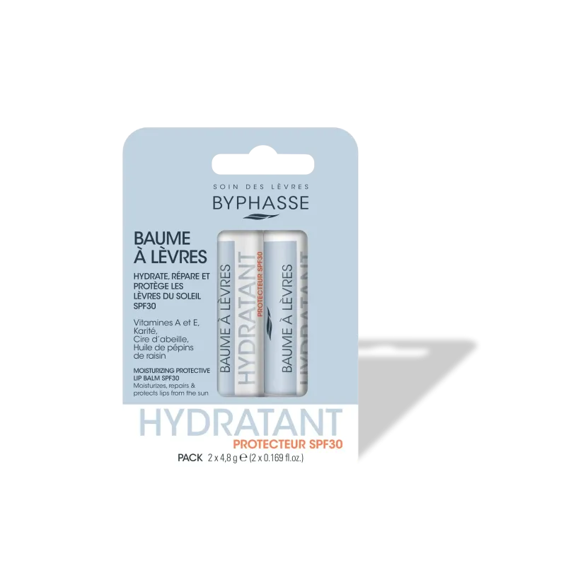 Le baume à lèvres hydratant de Byphasse est un soin quotidien essentiel pour les lèvres sèches et abîmées. Ce pack contient deux baumes, parfaits pour en garder un sur soi et un autre à la maison. Sa formule riche et nourrissante, enrichie en cire d'abeille, huiles végétales et un indice de protection solaire SPF 30, agit pour hydrater, réparer et protéger les lèvres des agressions extérieures comme le vent, le froid et surtout les rayons UV. Il soulage instantanément la sensation de tiraillement et laisse les lèvres douces, lisses et confortables. C'est le soin idéal pour des lèvres saines et bien hydratées tout au long de la journée, avec une protection supplémentaire contre les dommages du soleil.
