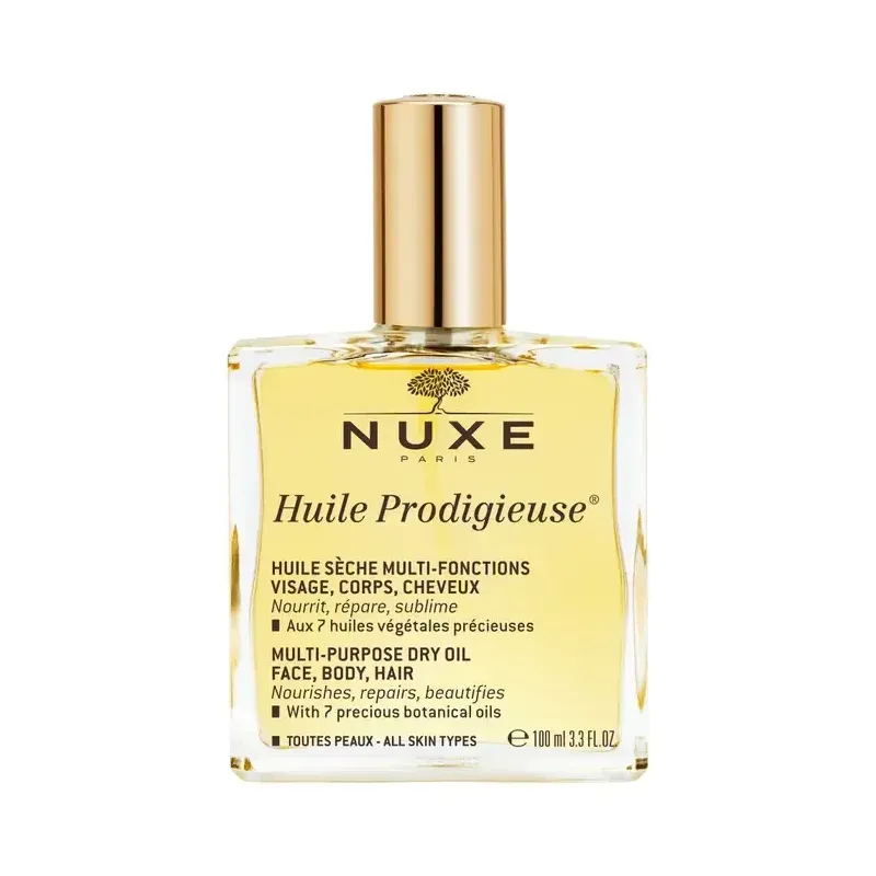 L'Huile Prodigieuse de NUXE est une huile sèche multi-fonctions pour le visage, le corps et les cheveux. Elle nourrit, répare et sublime la peau et les cheveux grâce à sa formule aux 7 huiles précieuses et son parfum mythique.