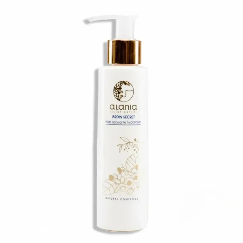 ALANIA JARDIN SECRET Huile Apaisante Hydratante 150ML est un soin corporel luxueux à la texture légère et non grasse, spécialement formulé pour apaiser, nourrir et restaurer la barrière cutanée. Ce véritable élixir de beauté est un concentré d'huiles végétales et d'huiles essentielles, notamment d'Eucalyptus et de Lavande. Grâce à cette synergie d'actifs, elle possède des propriétés hydratantes, cicatrisantes, anti-inflammatoires et relaxantes. Elle pénètre facilement, laissant la peau douce, souple et délicatement parfumée. Elle est idéale pour un usage quotidien, pour un massage ou en soin post-épilation ou post-acte dermatologique.