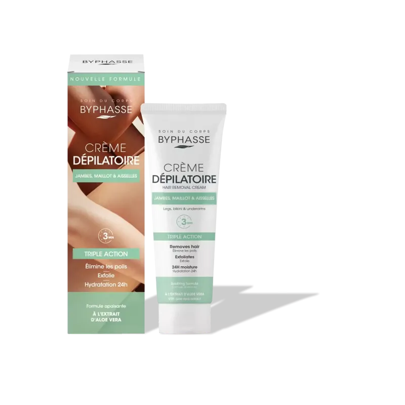 La crème dépilatoire Byphasse à l'Aloe Vera est une solution efficace et douce pour l'épilation du corps. Formulée pour une utilisation sur les jambes, le maillot et les aisselles, elle élimine les poils indésirables en quelques minutes, sans douleur et sans risque de coupure. Sa formule enrichie en Aloe Vera procure un effet apaisant et hydratant, ce qui aide à prévenir les rougeurs et les irritations souvent causées par la dépilation. La crème laisse la peau douce, lisse et parfaitement soignée. Elle est idéale pour un résultat impeccable et durable.