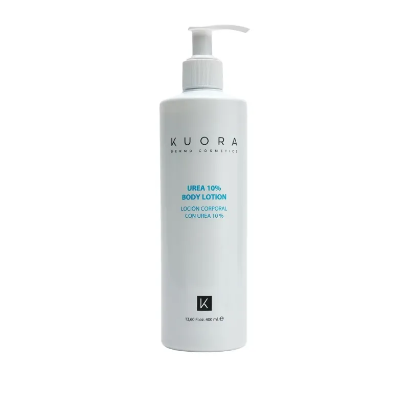La Lotion pour le Corps Urée dix pour cent de Kuora est un soin hydratant intense et protecteur, spécialement formulé pour les peaux souffrant de sécheresse sévère, de rugosité, de desquamation ou de crevasses. Présentée en flacon de quatre cent millilitres, sa formule utilise l'Urée comme actif principal, reconnu pour ses propriétés humectantes puissantes et kératolytiques douces. Cette lotion corporelle sans huile pénètre rapidement dans l'épiderme pour offrir une hydratation profonde et prolongée, tout en aidant à éliminer les cellules mortes et à adoucir les zones rugueuses. Elle apaise immédiatement les sensations de tiraillement et rétablit l'équilibre hydrolipidique naturel de la peau.