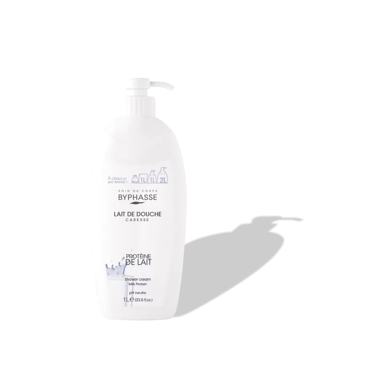Le lait de douche caresse aux protéines de lait de Byphasse est un soin lavant onctueux et généreux, conçu pour le plaisir de la douche quotidienne de toute la famille. Sa formule crémeuse est enrichie en protéines de lait qui aident à hydrater et à adoucir la peau, la laissant soyeuse et nourrie. Au pH neutre, il respecte le film hydrolipidique de l'épiderme et le préserve du dessèchement. Sa texture douce se transforme en une mousse délicate qui nettoie en profondeur sans agresser. Le parfum léger et poudré de ce lait de douche procure une sensation de confort et de bien-être, pour une peau propre, douce et apaisée. Son format d'un litre est parfait pour un usage quotidien et pour toutes les peaux.