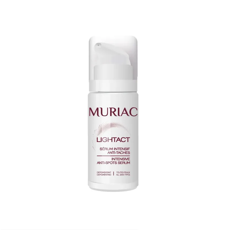 Le MURIAC SÉRUM INTENSIF ANTI TACHES 30ML, de la gamme Lightact, est un soin concentré haute performance conçu pour corriger intensément les taches pigmentaires (mélasma, taches de soleil, taches de vieillesse, marques d'imperfections) et unifier le teint. Sa formule ciblée agit à plusieurs niveaux : elle exfolie en douceur la mélanine préformée, régule la production excessive de mélanine à la source (au cœur de l'unité mélano-dermique) et stimule la régénération cellulaire. Le sérum offre également une action préventive anti-âge et apporte une hydratation durable, laissant la peau apaisée, plus lumineuse et visiblement plus uniforme. Sa texture légère et non grasse pénètre rapidement, le rendant idéal pour une application avant la crème de jour ou de nuit.