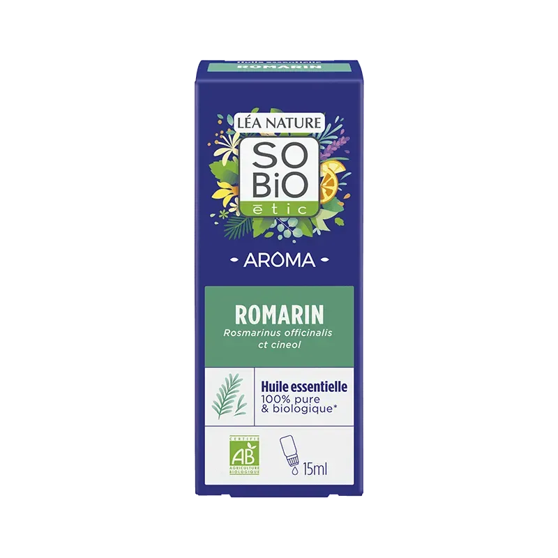 L'Huile Essentielle de Romarin Biologique de SO'BiO étic est généralement issue de la variété à Cinéole, reconnue pour ses puissantes vertus revitalisantes et respiratoires. Obtenue par distillation des rameaux, cette essence aromatique est un excellent tonique physique et mental. Son parfum frais, camphré et stimulant est idéal pour lutter contre la fatigue, le surmenage et le manque de concentration, agissant comme un véritable "coup de fouet" naturel. Elle est également très appréciée en période hivernale pour ses propriétés expectorantes et mucolytiques, dégageant les voies respiratoires. En cosmétique, elle est utilisée pour fortifier le cuir chevelu et purifier la peau.