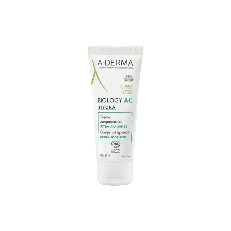 La A-Derma Biology AC Hydra Crème Compensatrice Ultra-Apaisante 40ml est un soin dermatologique conçu spécifiquement pour les peaux grasses à tendance acnéique qui sont fragilisées par des traitements desséchants (comme les rétinoïdes oraux ou topiques). Sa formule à la fois hydratante et apaisante offre un confort immédiat et durable, aidant la peau à surmonter les effets secondaires des traitements anti-acnéiques sans compromettre leur efficacité.
