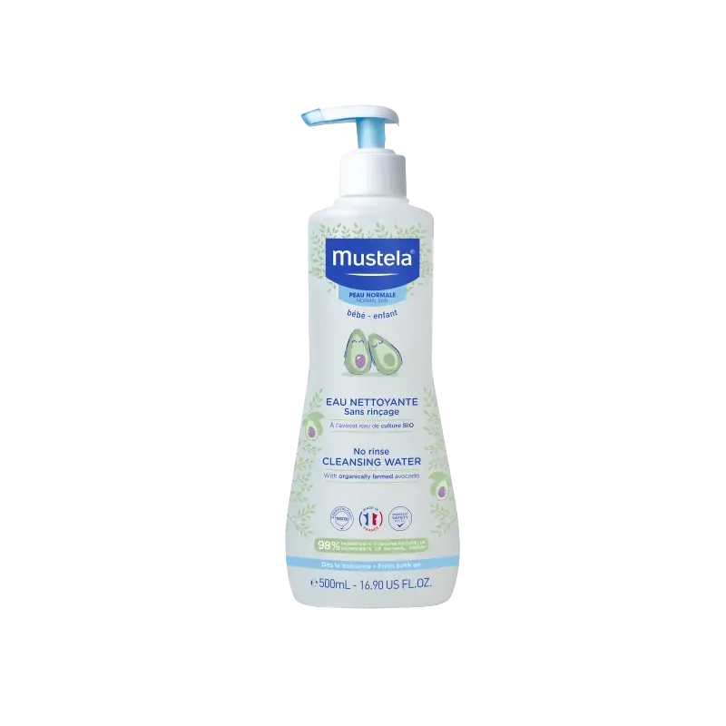 Mustela Eau Nettoyante Sans Rinçage 500ml est un produit d'hygiène quotidienne doux et pratique, idéal pour le visage et le siège des bébés et des enfants, utilisable dès la naissance (hors prématurés).