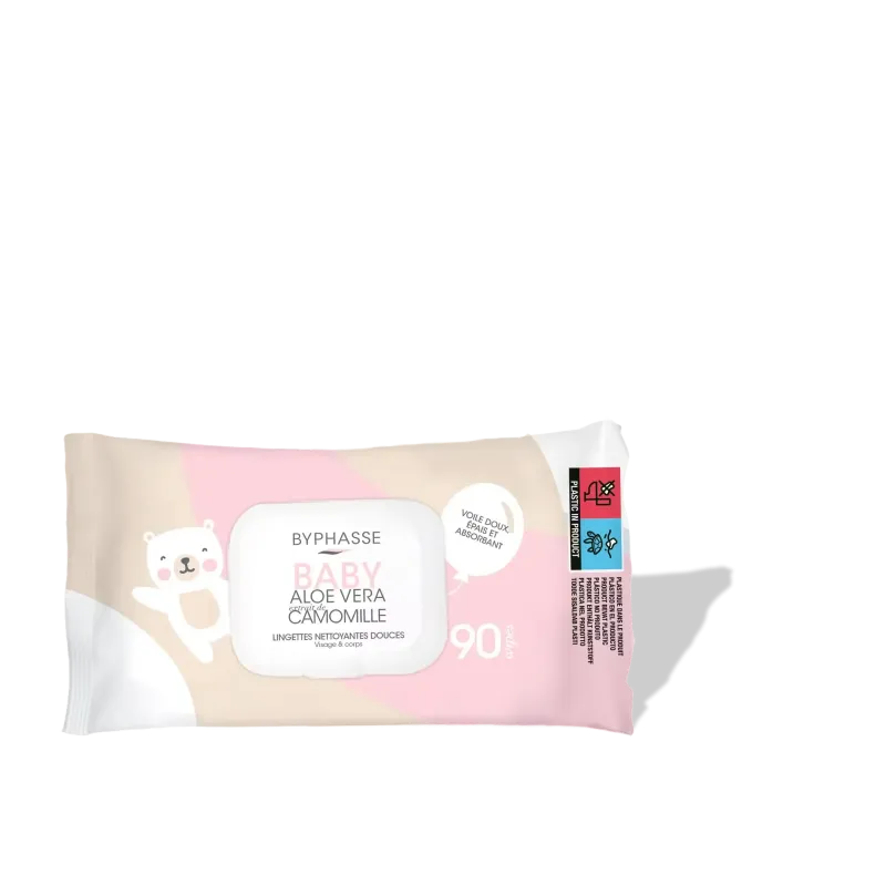 Les lingettes bébé Byphasse à l'Aloe Vera et à l'extrait de camomille sont un soin idéal pour le nettoyage de la peau délicate et sensible des nourrissons. Conçues avec une formule ultra-douce, elles sont enrichies en Aloe Vera pour hydrater et apaiser la peau, et en extrait de camomille pour ses propriétés anti-inflammatoires et calmantes. Elles nettoient en douceur le siège, le visage et le corps de bébé sans agresser l'épiderme. Leur texture souple et résistante assure un nettoyage efficace, tandis que la lotion imprégnée laisse la peau propre, fraîche, douce et protégée. Leur grand format de 90 lingettes et leur emballage refermable les rendent parfaites pour la maison ou pour le sac à langer.
