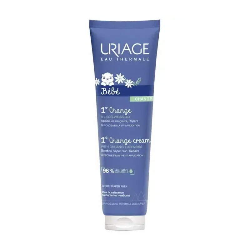 URIAGE Bébé Crème de Change 100ml est un soin protecteur et réparateur essentiel pour la zone du siège des bébés, spécialement formulé pour prévenir et traiter les rougeurs et irritations liées aux couches.