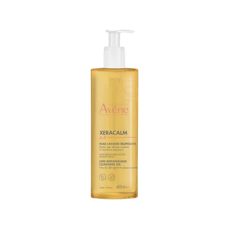 L'Avène XeraCalm A.D. Huile Lavante Relipidante 400ml nettoie en douceur et apaise les peaux très sèches, atopiques et sujettes aux démangeaisons de toute la famille (visage & corps). Grâce à l'I-modulia® anti-démangeaisons, au Cer-omega relipidant et à l'Eau Thermale d'Avène, elle nourrit intensément, restaure la barrière cutanée et calme les irritations, laissant la peau hydratée et confortable, sans savon ni parfum.