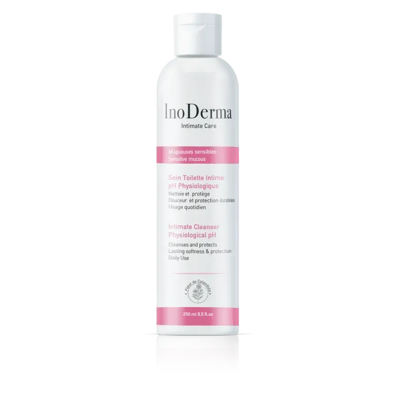 Le INODERMA SOIN TOILETTE INTIME PH PHYSIOLOGIQUE est un gel nettoyant quotidien spécifiquement conçu pour l'hygiène des muqueuses sensibles. Son pH, généralement autour de 6, est méticuleusement choisi pour respecter l'équilibre naturel de la flore intime, qui est légèrement acide. Sa formule contient des bases lavantes ultra-douces et est enrichie en extrait de fleur de Calendula pour ses propriétés apaisantes, protectrices et hydratantes. Il nettoie en douceur, sans agresser, et aide à prévenir les sensations d'inconfort, d'irritations ou de sécheresse, offrant ainsi une agréable sensation de fraîcheur et de protection durable pour l'hygiène intime quotidienne.
