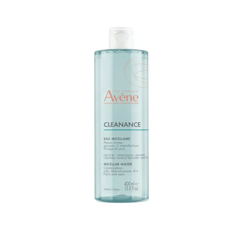 L'Eau Micellaire Avène Cleanance 400ml nettoie, démaquille et purifie en douceur les peaux sensibles, grasses ou à tendance acnéique. Enrichie en Comedoclastin™ sébo-régulateur et en Eau Thermale d'Avène apaisante, elle réduit l'excès de sébum, la brillance et les imperfections, tout en laissant la peau nette, fraîche et matifiée, sans rinçage.