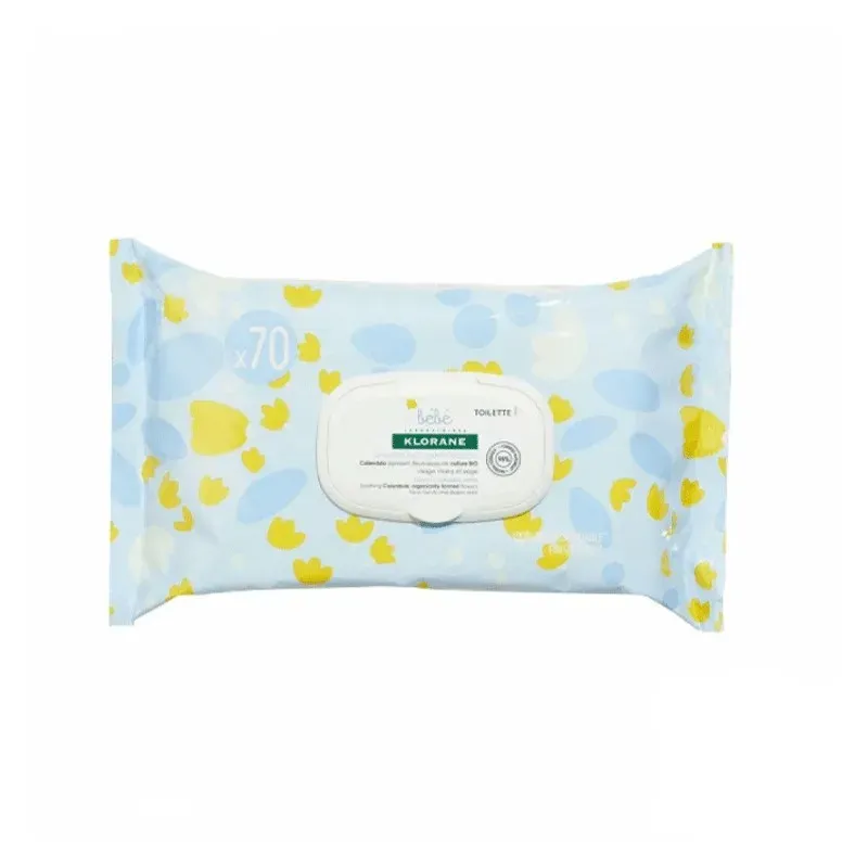 Lingettes nettoyantes douces au Calendula, idéales pour le change et la toilette de bébé dès la naissance, elles nettoient, hydratent et apaisent la peau sans rinçage.