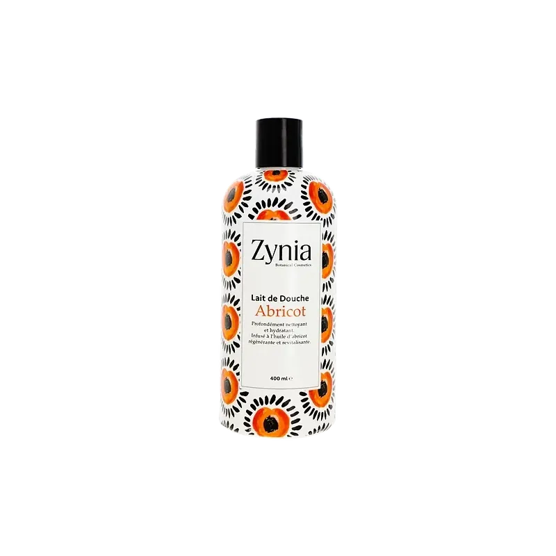 Lait de douche Zynia Abricot (400 ml), enrichi en lait, nettoie délicatement et hydrate la peau, laissant un parfum fruité et gourmand pour une peau douce et souple.