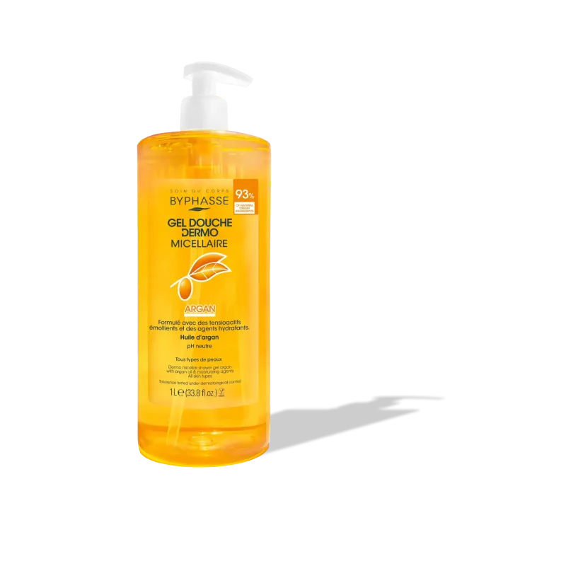 Le gel douche dermo-micellaire à l'argan de Byphasse est un soin lavant conçu pour nettoyer en douceur et nourrir les peaux sèches. Sa formule douce, sans savon et à pH neutre, contient des micelles, de petites particules qui agissent comme un aimant pour capturer et éliminer les impuretés sans agresser l'épiderme. Enrichi en huile d'argan, reconnue pour ses propriétés nourrissantes et régénératrices, ce gel douche hydrate la peau en profondeur et prévient le dessèchement. Sa texture onctueuse se transforme en une mousse délicate qui laisse la peau incroyablement douce, souple et protégée. Son parfum oriental et gourmand procure une agréable sensation de bien-être à chaque utilisation. C'est le soin idéal pour toute la famille, pour une peau nourrie et un confort durable.