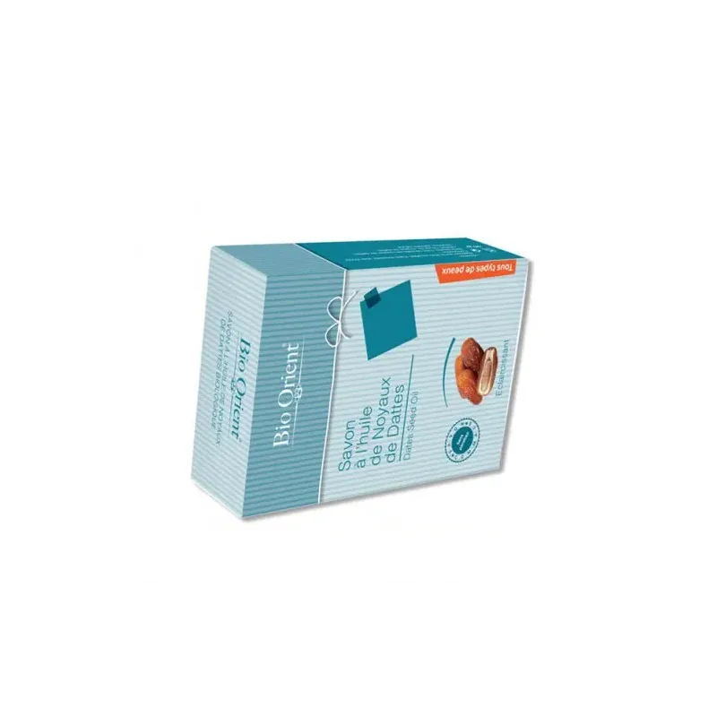 Le SAVON BIO ORIENT À L'HUILE DE NOYAUX DE DATTES est un savon surgras formulé autour de l'huile précieuse extraite des noyaux de dattes. Cette huile, riche en antioxydants, vitamines et acides gras essentiels, confère au savon des propriétés exceptionnelles. Il est conçu pour le nettoyage quotidien du visage et du corps, offrant une hydratation supérieure et une action régénérante et protectrice. Il produit une mousse agréable et douce, respectant le film hydrolipidique de la peau. Grâce à son action anti-oxydante, il aide également à lutter contre les signes du vieillissement cutané, laissant la peau adoucie, lisse et éclatante.