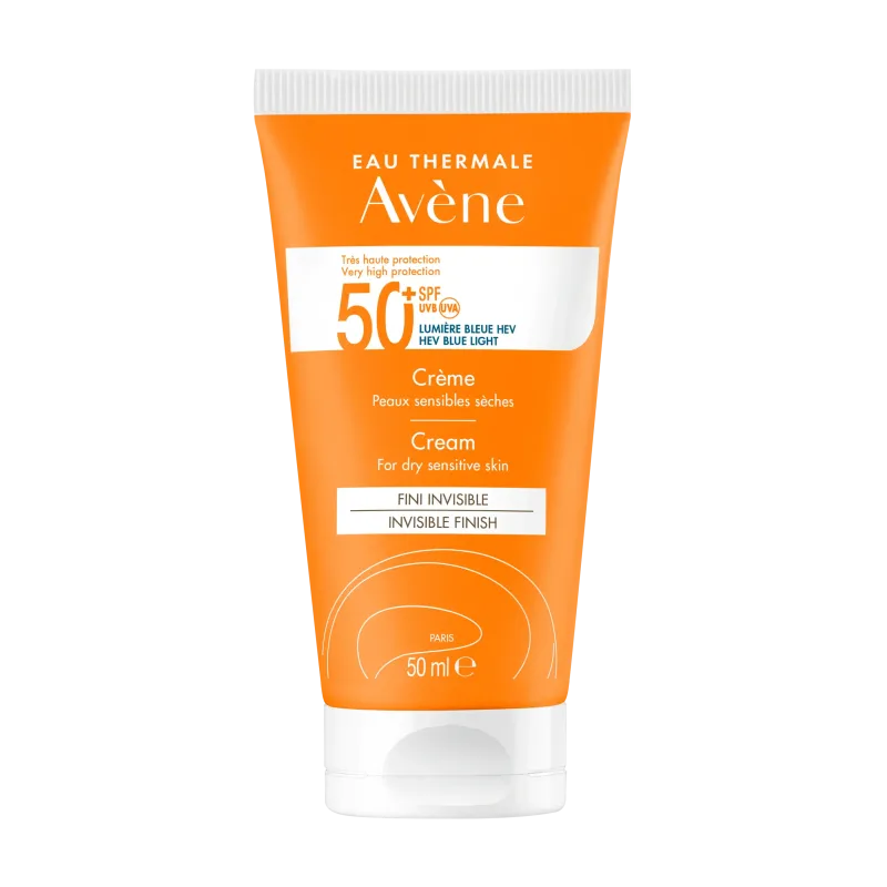 L'Avène Crème Solaire Très Haute Protection SPF50+ 50ml offre une photoprotection ultra large spectre (UVB, UVA, lumière bleue) pour les peaux sensibles sèches du visage. Grâce à son filtre breveté TriAsorB™, son complexe antioxydant et l'Eau Thermale d'Avène, elle protège efficacement, apaise et résiste à l'eau, le tout avec un fini invisible et une haute tolérance (sans parfum).