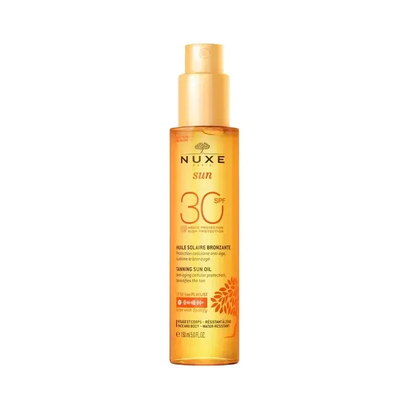 NUXE SUN HUILE BRONZANTE VISAGE ET CORPS SPF30 est une huile solaire qui offre une protection anti-âge et une haute protection contre les UVA/UVB, tout en sublimant le bronzage. Sa formule non grasse et résistante à l'eau nourrit et protège la peau pour un bronzage lumineux et durable.
