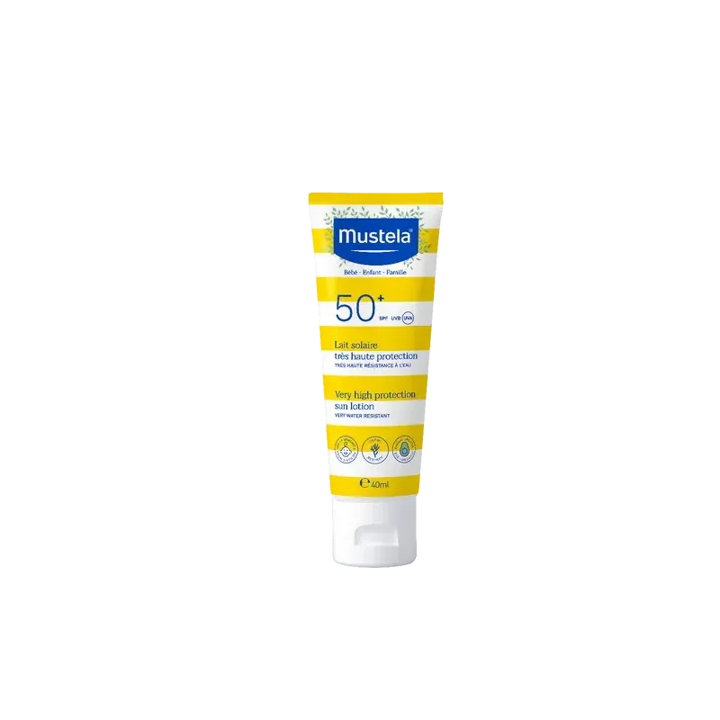 MUSTELA LAIT SOLAIRE TRÈS HAUTE PROTECTION SPF50+ 40ML est une protection solaire essentielle conçue pour la peau délicate des bébés et des enfants dès la naissance, y compris les peaux sensibles, intolérantes au soleil et à tendance atopique. Il convient également à toute la famille.