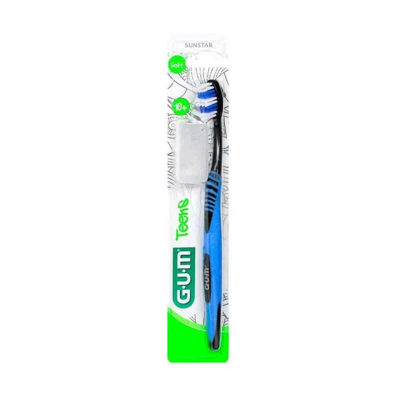 GUM BROSSE À DENTS TEENS 10 ANS+ (référence 904) est une brosse à dents manuelle spécifiquement conçue pour répondre aux besoins d'hygiène bucco-dentaire des pré-adolescents et adolescents à partir de dix ans et plus. Cette tranche d'âge est particulièrement importante, car elle correspond souvent à la fin de la denture mixte et à l'apparition de l'ensemble des dents définitives. La brosse à dents GUM Teens combine un design attrayant et des caractéristiques ergonomiques pour encourager un brossage efficace et régulier. Elle est munie d'une tête compacte parfaitement adaptée à la bouche des adolescents. Ses brins souples (soft) sont spécialement coupés en dôme (coupe en dôme) pour éliminer délicatement et facilement la plaque dentaire, y compris le long du sillon gingival, sans agresser les gencives, souvent sensibles à cet âge. Le manche est ergonomique et souvent doté d'un emplacement pour le pouce (antidérapant), facilitant une prise en main optimale et aidant à positionner la brosse à l'angle idéal pour un brossage efficace. Elle est disponible dans une gamme de couleurs vives et tendances.